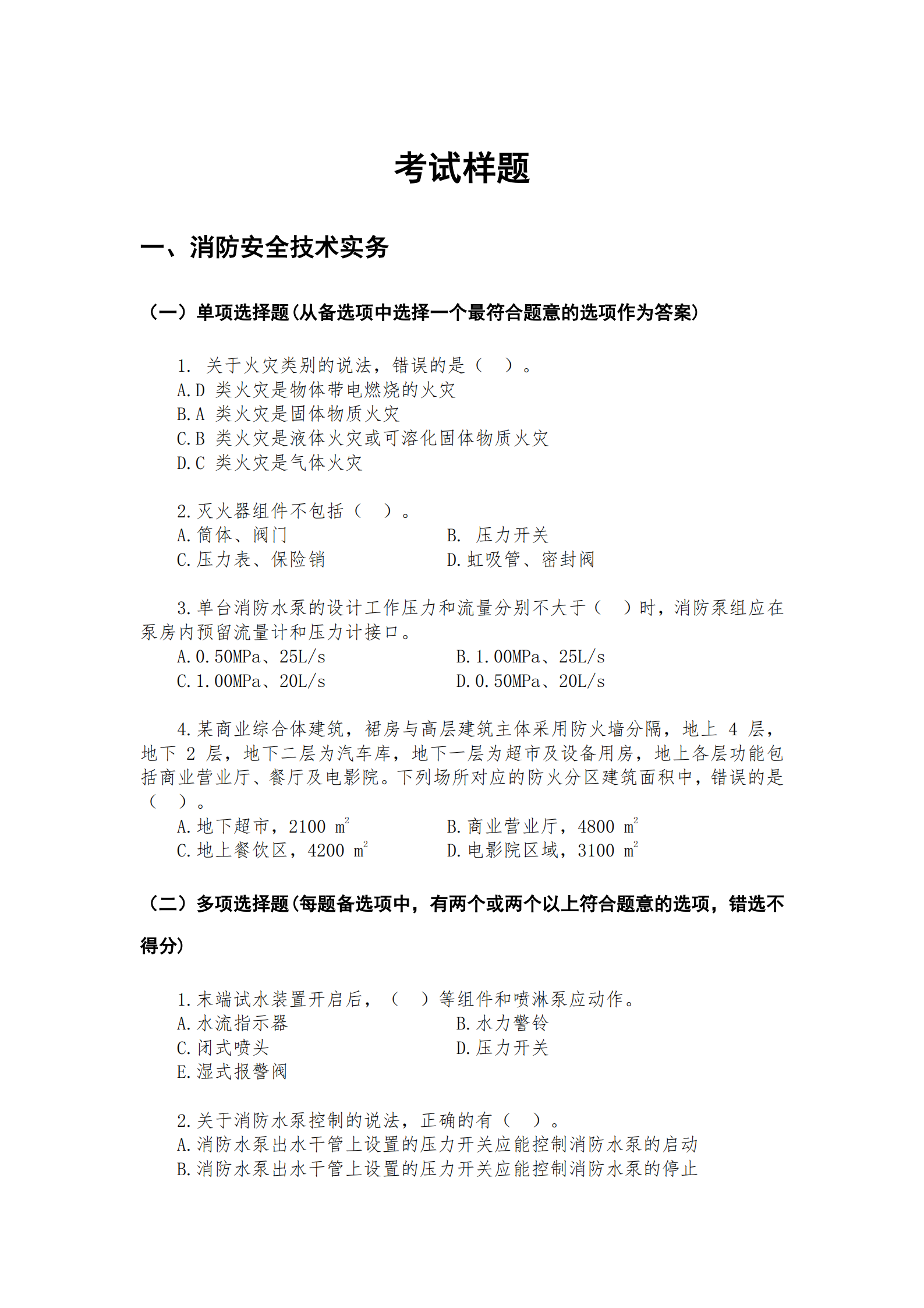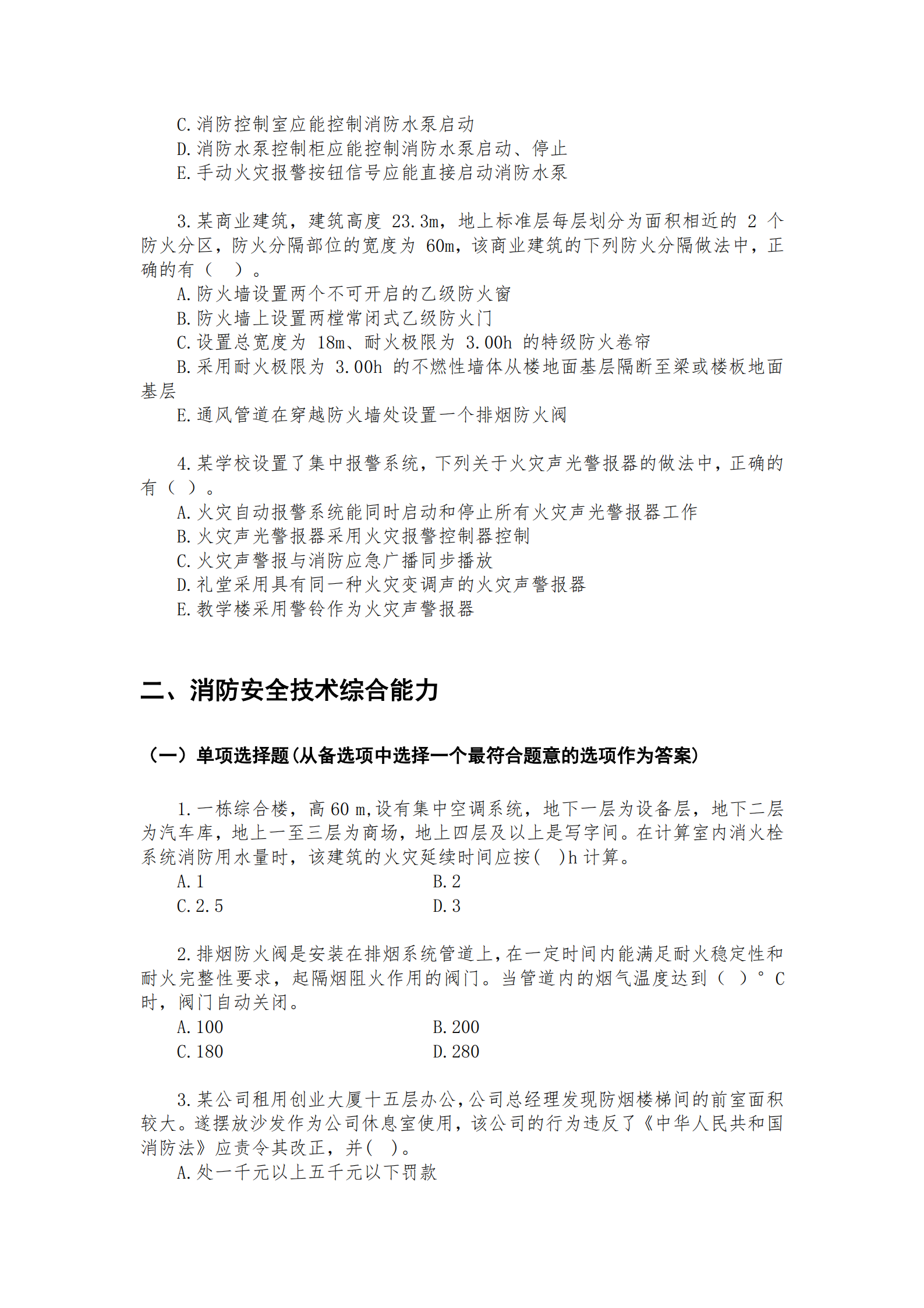 查看2. 《消防安全技術(shù)綜合能力》歷年試題及答案