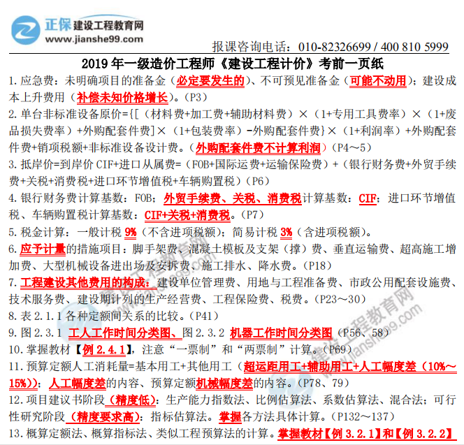 2019年一級造價師考試即將開考,為了幫助考生高效進行考前復習,拿到更多分數,爭取順利備考,建設工程教育網的老師們精心整理了“2019一級造價師考前一頁紙”考前必備資料,免費發(fā)給大家,領取吧!