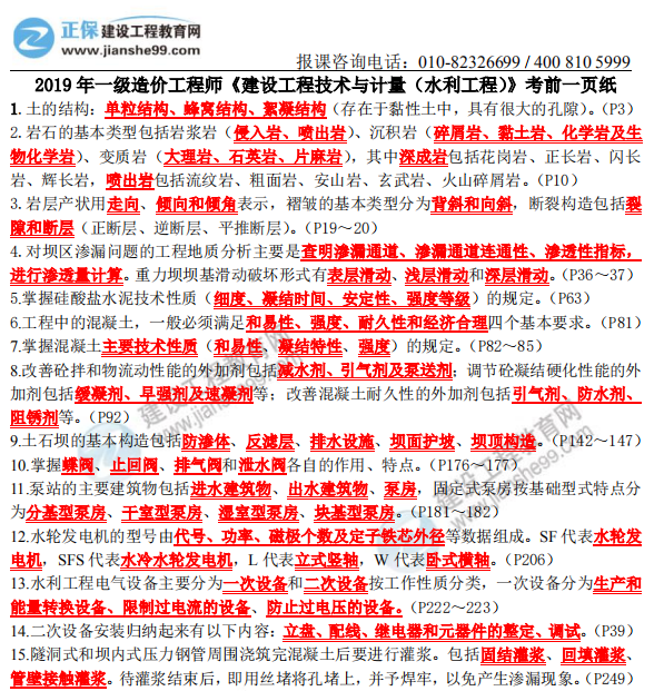 2019年一級(jí)造價(jià)師《水利計(jì)量》考前一頁(yè)紙