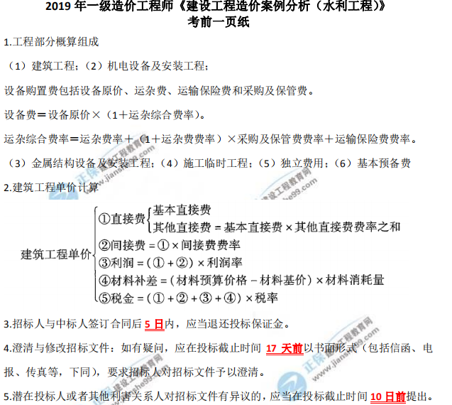 2019年一級(jí)造價(jià)師《水利案例》考前一頁(yè)紙