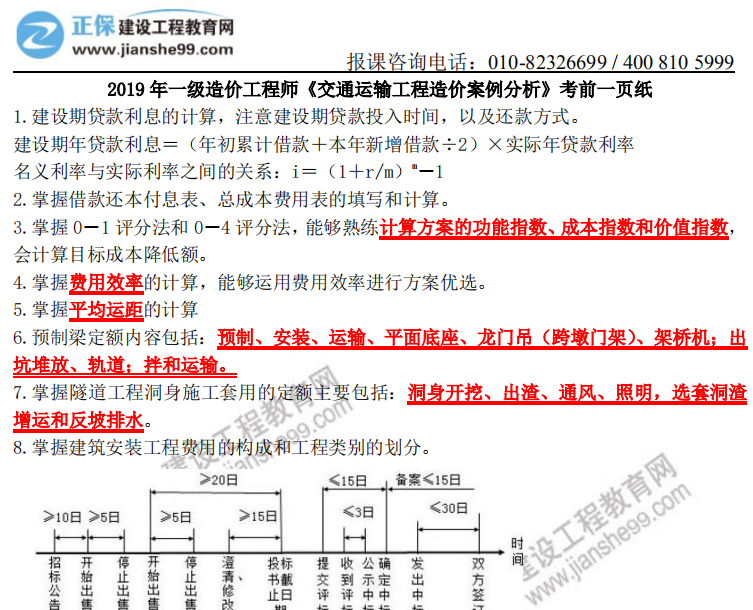 2019年一級(jí)造價(jià)師《交通案例》考前一頁紙