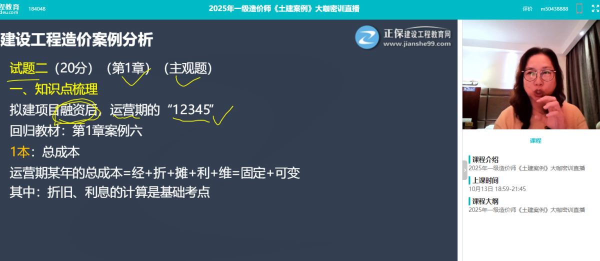 課程回顧:2025一造考試輔導(dǎo)課程——考前串講——試題四——第01講