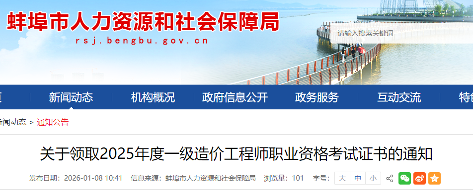 山東蚌埠市2025年度一級(jí)造價(jià)工程師考試合格證書領(lǐng)取通知