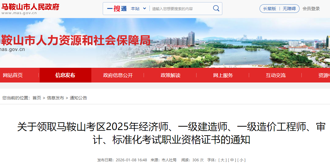 關(guān)于領(lǐng)取馬鞍山考區(qū)2025年經(jīng)濟(jì)師、一級建造師、一級造價工程師、審計、標(biāo)準(zhǔn)化考試職業(yè)資格證書的通知