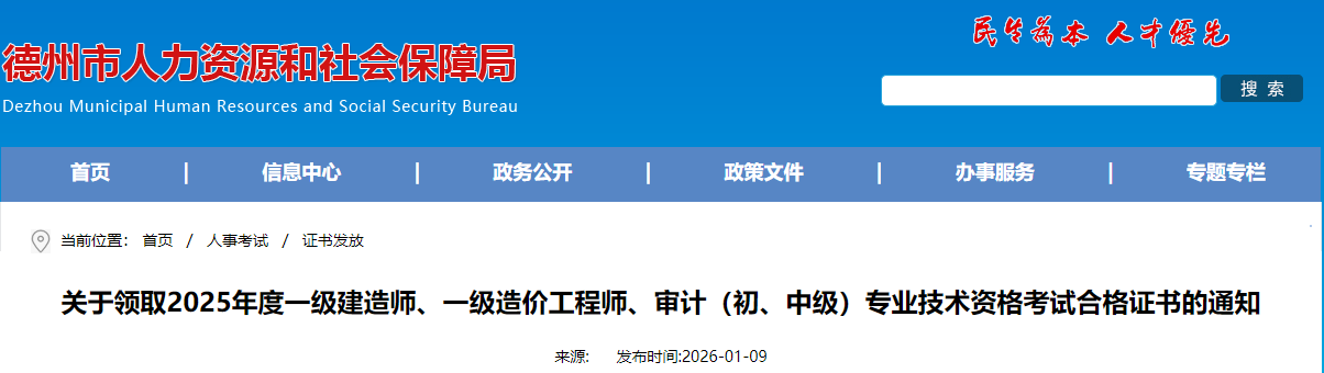 山東省德州市2025年度一級(jí)造價(jià)工程師證書領(lǐng)取通知已發(fā)布,詳情如下:
