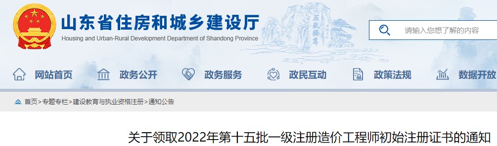 山東?關(guān)于領(lǐng)取2022年第十五批一級注冊造價(jià)工程師初始注冊證書的通知