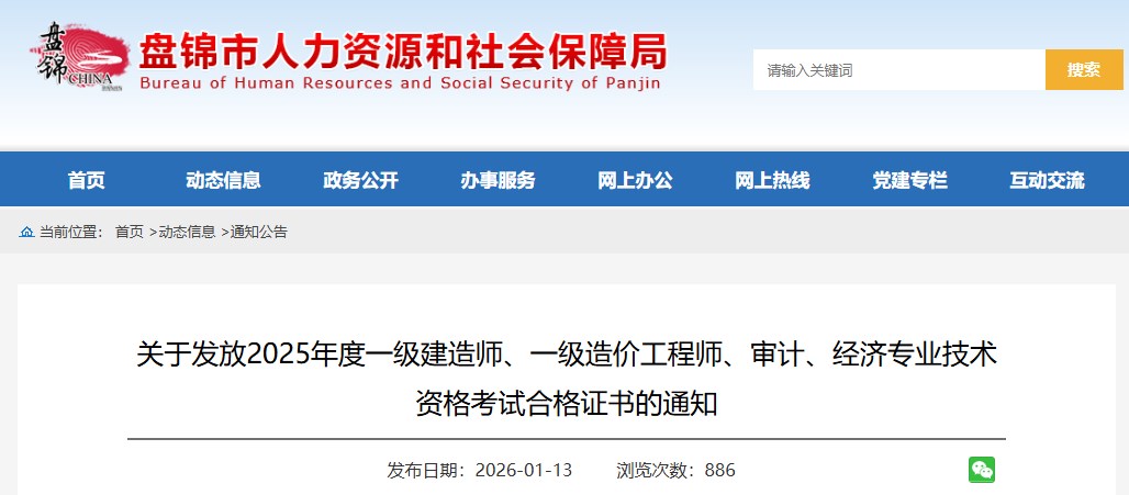 遼寧省盤錦市2025年度一級(jí)造價(jià)工程師資格證書發(fā)放通知