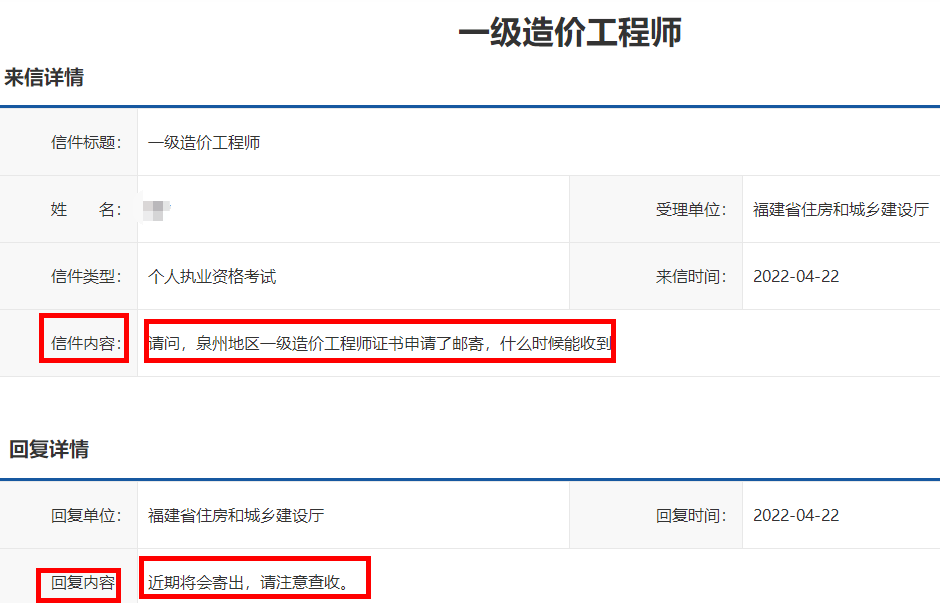 學(xué)員提問:請(qǐng)問,泉州地區(qū)一級(jí)造價(jià)工程師證書申請(qǐng)了郵寄,什么時(shí)候能收到?
