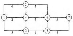 答案解析:本題考查的是標號法。關鍵線路有:①→②→⑥→⑦;①→③→④→⑥→⑦;①→③→⑤→⑥→⑦;①→③→⑤→⑦四條。參見教材P129。