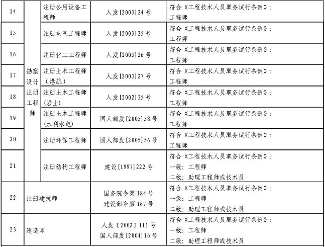 二、對(duì)于取得一級(jí)注冊(cè)結(jié)構(gòu)工程師、一級(jí)建筑師或一級(jí)建造師資格的人員,可聘任工程師職務(wù);對(duì)于取得二級(jí)注冊(cè)結(jié)構(gòu)工程師、二級(jí)建筑師或二級(jí)建造師資格的人員,可聘任技術(shù)員過著助力工程師職務(wù)。