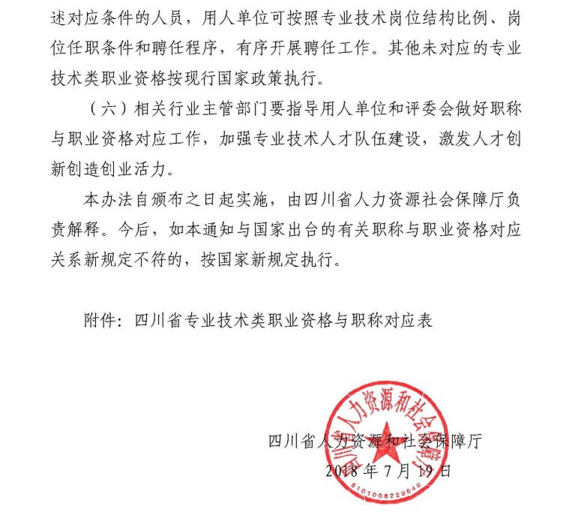 四川省關(guān)于部分專業(yè)技術(shù)類職業(yè)資格可聘相應(yīng)專業(yè)技術(shù)職務(wù)的通知
