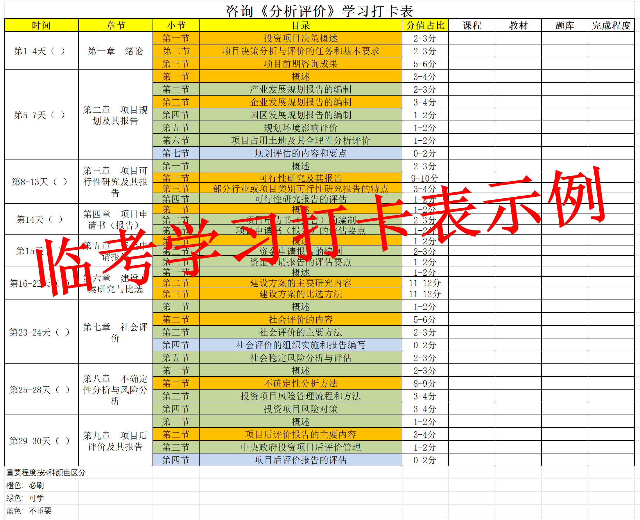 打卡表預(yù)覽(以《分析評(píng)價(jià)》為例):